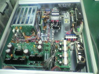 電源装置の内部です。筐体、電源周りから、各基板すべて社内にて製作し、配線をしました。